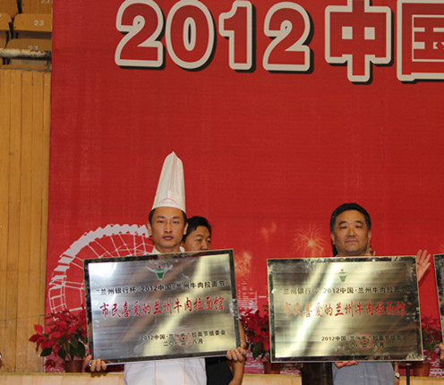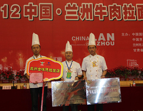 2012中國(guó)蘭州牛肉拉面節(jié)落下帷幕,金味德蘭州牛肉拉面店被評(píng)為“市民喜愛(ài)的蘭州牛肉拉面館”,蘭州牛肉面專(zhuān)業(yè)技術(shù)培訓(xùn)中心代表隊(duì)在牛肉拉面技術(shù)大賽上獲得團(tuán)體三等獎(jiǎng)。