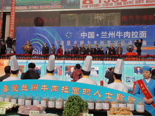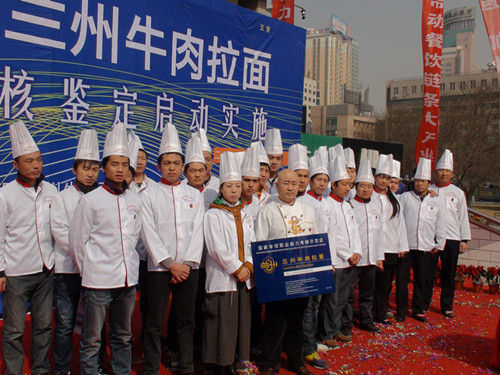 2012年3月26日,由蘭州牛肉拉面制作專項職業能力考核委員會、甘肅省人力資源行業協會、甘肅省職業技能鑒定指導中心聯合舉辦的“蘭州牛肉拉面制作專項職業能力考核鑒定啟動實施”盛會于蘭州東方紅廣場正式拉開幃幕。