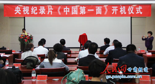 人民網(wǎng)蘭州5月8日電(記者 王生元 實習記者 呂守奎)5月8日下午,由蘭州市委市政府、城關區(qū)委區(qū)政府、蘭州市廣播電視總臺主創(chuàng)的央視紀錄片?中國第一面?在城關區(qū)政府舉行了開機儀式。蘭州市委宣傳部常務副部長張正華出席儀式。