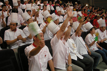 活動結束后烹飪學校所有學員與節目主持人合影留念