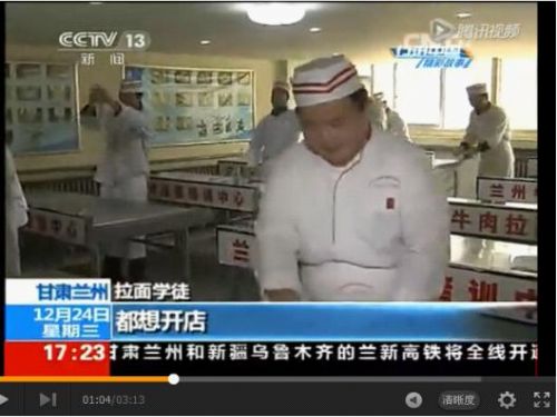 2014年12月中央電視臺《CCTV-13》新聞頻道慕名前來拍攝絲綢之路蘭州食文化《蘭州牛肉面》,并找到了蘭州牛肉面歷史上首部文化技術專著《蘭州牛肉拉面寶典》主編,蘭州牛肉拉面行業協會秘書長,甘肅興隴蘭州牛肉拉面職業培訓學校校長,蘭州烹飪協會牛肉拉面培訓基地董事長梁順儉先生了解蘭州牛肉拉面走向世界之路的詳細歷程。