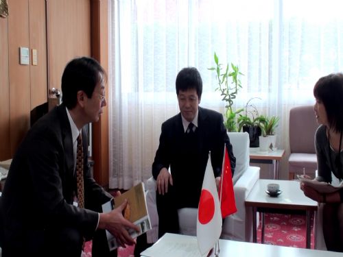 金味餐飲有限公司總經理梁順儉先生與日本秋田市長穗積志對蘭州拉面文化進行交流