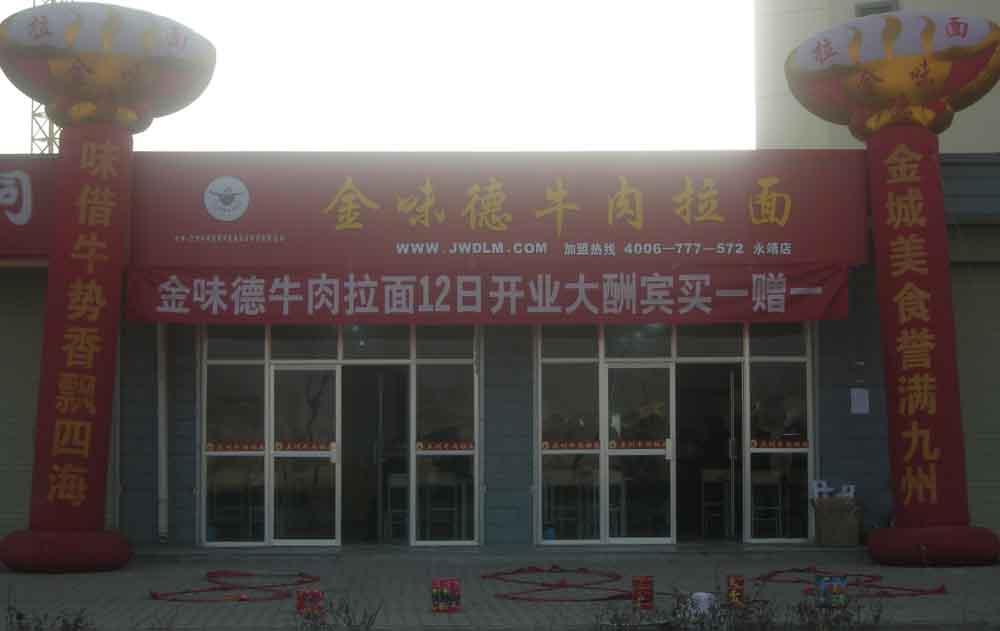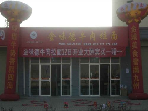 金味德蘭州拉面永靖店位于永靖縣城繁華地段,永靖是古絲綢之路的主要通道,已被納入隴海蘭新線經濟帶甘肅段開發規劃和蘭州市1小時都市經濟圈。 永靖店經營面積100多平方米,用餐環境優雅、裝修風格樸素大方,經營品種以傳統蘭州牛肉拉面系列為主,特色經營品種為酸菜牛肉拉面,兼營炒面條、小菜。