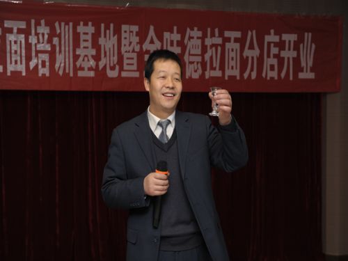 圖為蘭州牛肉拉面培訓基地暨金味德拉面開業時梁總祝詞