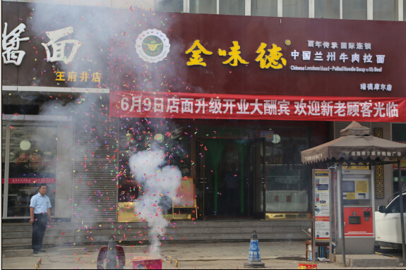 2015年6月9日,萬里晴空,陽光明媚。甘肅金味餐飲有限公司旗下“金味德”蘭州牛肉拉面蘭新店升級隆重開業,該店的開業標志著 “金味德”蘭州牛肉面又比同行業前進一步,成為牛肉面行業的佼佼者。