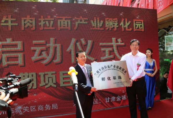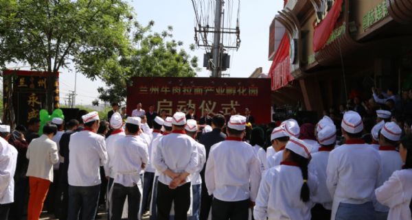 各位領導、各位來賓,我們今天取得的所有成績,都離不開省、市、區各級政府領導和行業協會的大力扶持,離不開廣大同仁的鼎力相助。蘭州牛肉拉面產業孵化園籌建之初,蘭州市商務局、蘭州市宗委、城關區政府,城關區商務局領導多次親臨現場指導,幫助協調解決問題。使產業孵化園在短短的幾個月就初具規模。蘭州牛肉拉面產業孵化園規劃占地60畝,總投資約5個億,其中一期建設建筑面積5000平米,首期投資3000多萬元。