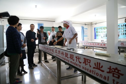 在蘭州興隴現代職業培訓學校校長梁順儉的陪同下,曲學云副巡視員一行參觀了中國蘭州牛肉拉面體驗工坊、蘭州興隴現代職業培訓學校、鑫味德蘭州牛肉拉面調味品加工廠、蘭州牛肉拉面實訓操作室、蘭州牛肉拉面產業創客孵化園等。參觀的同時,梁校長詳細的向考察團介紹了培訓基地的建設、教學、就業以及蘭州牛肉拉面文化等,考察團一行對學校的建設、教學以及少數民族特色技能培訓等工作給予了肯定和贊賞。