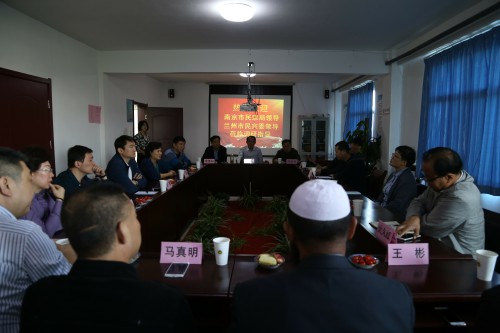 2016年9月25日上午9點,南京市民宗局副巡視員曲學云率領南京市秦淮區、江寧區、六合區、溧水區民族宗教局局長,南京市民宗局民族處主任以及南京市3家企業負責人一行9人來蘭州少數民族精準扶貧、特色技能再就業培訓基地——蘭州興隴現代職業培訓學校參觀考察,蘭州市民宗委副主任謝立宏、民族經濟處處長寇志軍、蘭州興隴現代職業培訓學校校長梁順儉等陪同參觀。