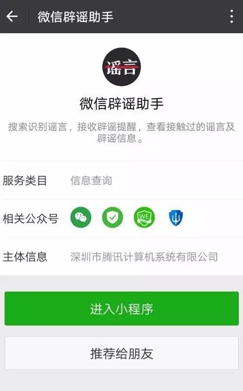 △微信新出的辟謠助手小程序