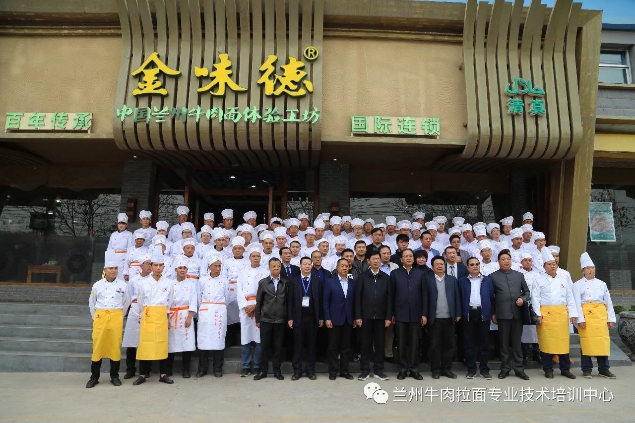 甘肅省副省長張世珍、甘肅省商務廳廳長張應華,副廳長任福康,蘭州市商務局副局長劉志強、蘭州牛肉拉面行業協會會長馬利民,甘肅金味德牛肉拉面產業集團董事長梁順儉等一行與學員合影。