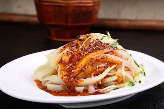 深受歡迎的蘭州小吃。用優(yōu)質(zhì)面粉精制而成,色澤晶瑩黃亮,透明如玉,調(diào)入醬油、香醋汁、蒜泥、辣椒油、芥茉、精鹽等。柔韌可口,酸辣涼爽。醒味開味。