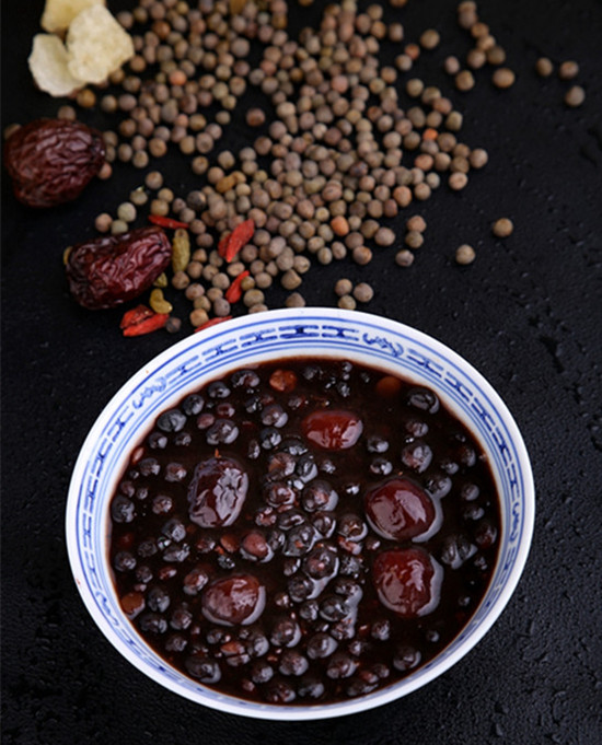 蘭州特色小吃。麻豌豆小火熬制,加紅棗。待紅棗煮破時(shí),汁液流入湯中,豆香棗香四溢。吃時(shí)撒入白糖,別具風(fēng)味。夏日冷飲可以祛署,冬日熱食可以滋補(bǔ)。