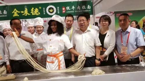 6月24日,參加2018中國面條博覽會的數(shù)十位中外嘉賓在甘肅省商務(wù)廳、甘肅省人社廳、甘肅省外事辦有關(guān)領(lǐng)導(dǎo)陪同下,前往蘭州金味德拉面公司下屬企業(yè)、培訓(xùn)學(xué)校參觀交流。當(dāng)日上午,美國南加州華人華僑商會會長、北美蘭州拉面餐飲文化集團(tuán)董事長應(yīng)持榮同蘭州牛肉拉面行業(yè)協(xié)會會長馬利民簽訂國際友好合作協(xié)議;同蘭州金味德牛肉面文化產(chǎn)業(yè)集團(tuán)董事長梁順儉簽訂意向性合作協(xié)議。根據(jù)協(xié)議,今年計劃在美國、加拿大、墨西哥等三國各開設(shè)一家蘭州金味德牛肉面分店。未來將開設(shè)百家分店,把蘭州牛肉面餐飲及文化傳播出去。