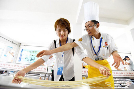 7月19日下午,由每日甘肅網和蘭州市委網信辦組織的“2018年全國重點網絡媒體、網絡大V甘肅行”采訪團走進金味德蘭州拉面文化產業集團的牛肉面博物館和體驗工坊,體驗蘭州拉面的傳統制作技藝,身臨其境地體驗蘭州牛肉面制作中的獨特魅力。