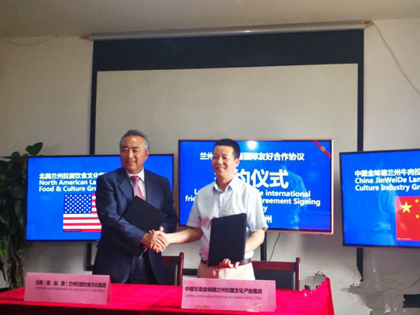 甘肅省商務廳副廳長任福康說,蘭州金味德拉面簽約進軍國際市場,起了很好的帶頭作用,有助于把蘭州牛肉面產業做大做強,提升了中國食品在美國的知名度和所占份額。他希望大力培育企業品牌,建設集科研開發、技術培訓、生產加工為一體的牛肉拉面產業體系。搶抓“一帶一路”發展機遇,加快拓展海外市場,加大走出去步伐,讓牛肉面成為蘭州名副其實的一張名片。