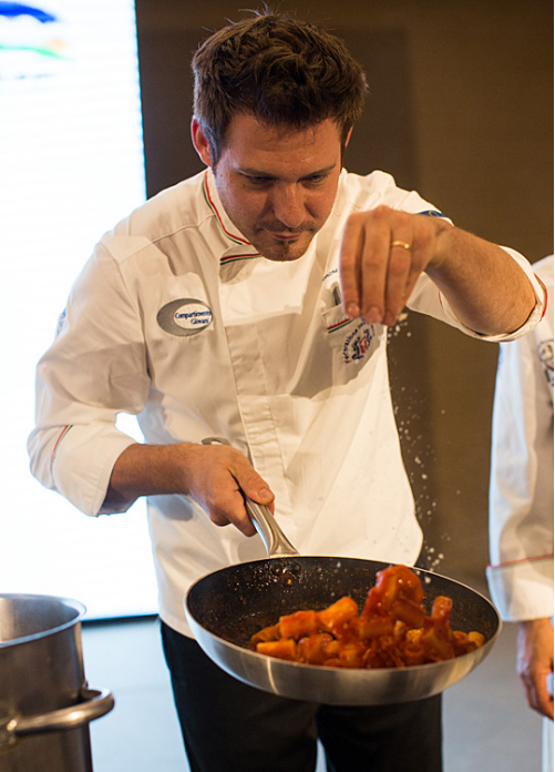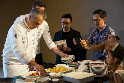 6月25日,意大利廚師在羅馬舉行的“蘭州牛肉拉面牽手意大利面”活動上制作意大利面。當日,“蘭州牛肉拉面牽手意大利面”暨蘭州市文化旅游推介活動在意大利羅馬拉開帷幕,來自中意兩國的廚師在活動現場“同臺競技”。此外,蘭州市還帶來了特色演出和民間手工技藝展示。