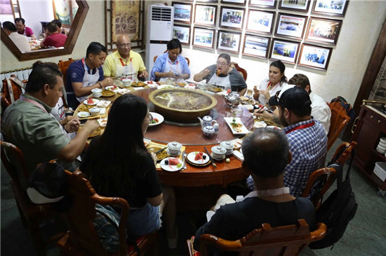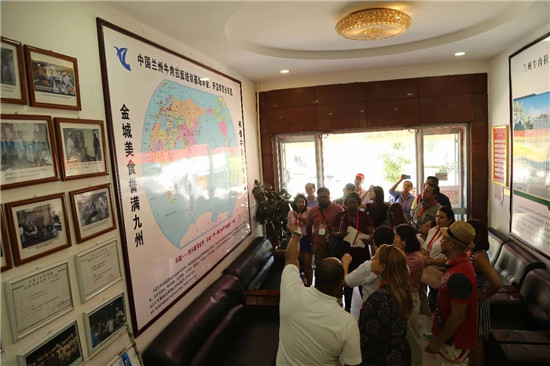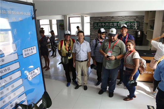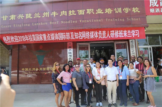7月31日,“2018年拉美國家重點媒體國際部及知名網絡媒體負責人研修班”學員在甘肅省委宣傳部,蘭州市委宣傳部外宣辦及蘭州牛肉拉面行業協會領導的陪同下分別來到了中國蘭州牛肉拉面體驗工坊、蘭州牛肉拉面創業孵化園、興隴蘭州牛肉拉面國際商學院、甘肅興隴蘭州牛肉拉面職業培訓學校參觀采訪。