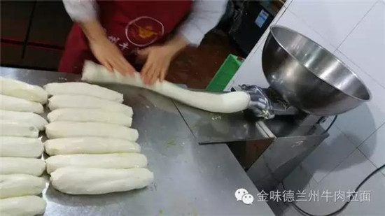 拉面培訓學校教授學員使用揉面出劑一體機 ![]() 據介紹,這款揉面出劑一體機參照手工揉面、溜條、出劑的過程研發而成,既可以揉面,同時可以制作出拉面的面劑子。主要用于代替蘭州牛肉拉面、河南燴面、扯面、山西刀削面、福山拉面、西安油潑面等面團的人工揉制環節,省時省力效率高,面團密度增加,面條口感更加筋道、耐泡,還廣泛用于饅頭店、餅子店、蛋糕店、手工面食店等,可以同時節省兩個人力,把人從和面、揉面中解放出來。目前,這款揉面出劑一體機已遠銷國內外,在澳大利亞、韓國、日本等國,深受牛肉面店老板的青睞。 國內外店面使用揉面出劑一體機