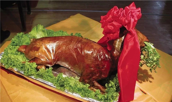 吃羊肉可暖中補虛,養膽明目,壯腎陽,補虛勞,健脾胃,理虛寒。而烤全羊,選擇膘肥體壯的三四齒綿羊,以特殊的烤制方法使羊肉熟透。吃起來酥脆香嫩,肥而不膩,品嘗過這種烤全羊,齒頰久久留香,終身難忘。