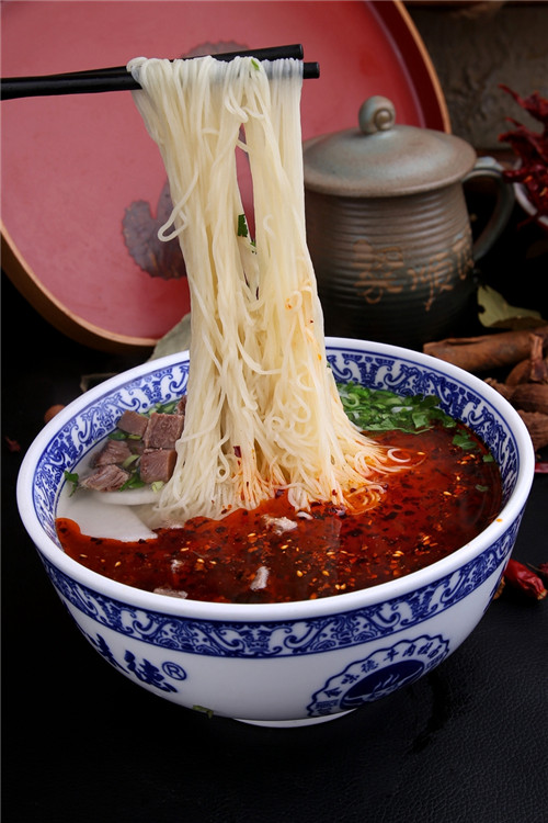 是蘭州牛肉面中最常見的品種,細面的拉制一般七手成型,面條直徑大約在2.5~2mm左右。粗細適中、老幼咸宜,口感筋道爽滑,是深受歡迎的面型。