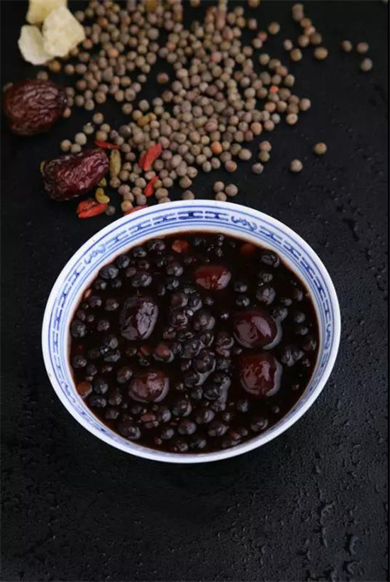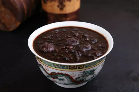 灰豆子是用麻色豌豆制成的一種類似紅豆沙的甜品,灰豆煮的很爛,豆皮都已經撈了出來。除了喝豆湯,碗里濃濃的豆沙也是難得的美味,酸酸甜甜。