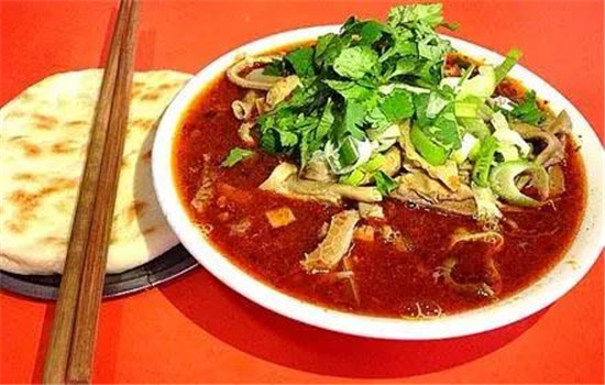 羊雜碎是甘肅永昌城鎮(zhèn)居民最愛吃的早點(diǎn),用大碗泡上蒸饃,抓一大把切碎的牛羊頭蹄腸肚,舀上肉湯,在肉湯鍋里,反復(fù)漂冒幾次,務(wù)使?jié)M碗烘燙,再端桌上請(qǐng)客人吃。