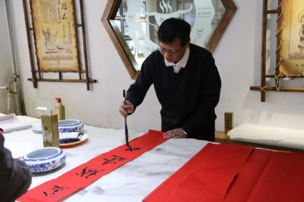 在活動現場,書畫家與公司員工歡聚一堂、共迎新春。各位書畫家飽蘸激情、揮毫潑墨,現場進行創作,畫筆濃墨重彩地描繪著自己的靈感,毛筆揮毫自如精心書寫著對生活的熱愛和感悟,一幅幅風格迥異的書畫作品呈現在眾人面前,寬敞明亮的工坊里翰墨飄香,熱鬧非凡。