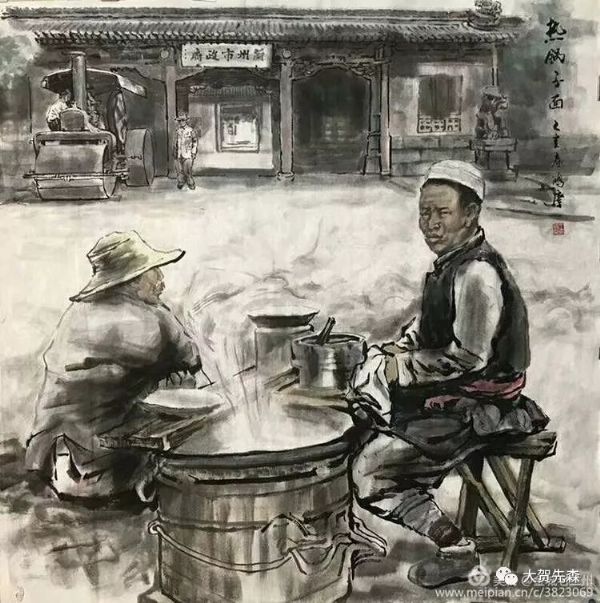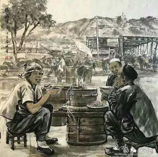 元宵節的燈會上,蘭州的牛肉拉面牛氣沖云霄 ! 《 燈會 》這副畫作是王鴻慶老師為中國國際廣播電臺2018年元宵頌詞中選用的老蘭州國畫作品而專門創作的。作品中駐足觀賞燈會的人物全部用飛墨留白的筆法,非常好地對比渲染出絢麗繽紛的燈光幻影, 一個極大夸張的海碗造型將碗中的牛肉面高高揚在半空中,淋漓盡致地把蘭州牛肉面的市場牛氣淋漓盡致地表現了出來,讓每個蘭州人看了都會歡欣鼓舞,無比自豪!