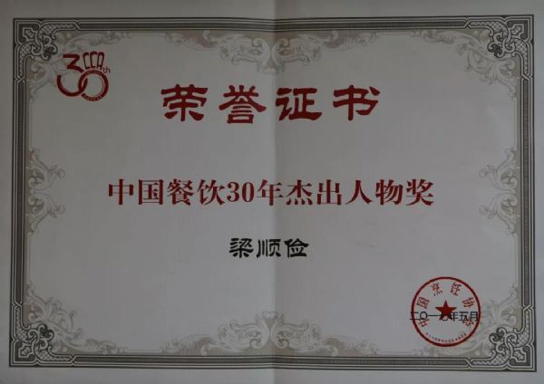中國餐飲30年杰出人物獎
