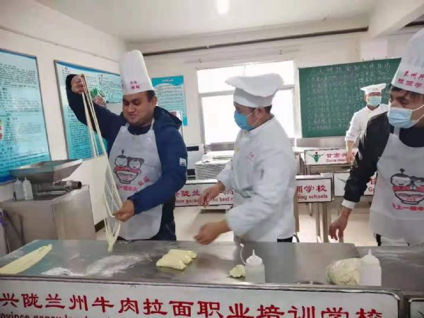 來到蘭州當然少不了見識一下蘭州牛肉面。在興隴蘭州牛肉拉面培訓學校,拉面師傅讓大家感受了一把牛肉面的制作流程,并品嘗了美味可口的蘭州牛肉面。