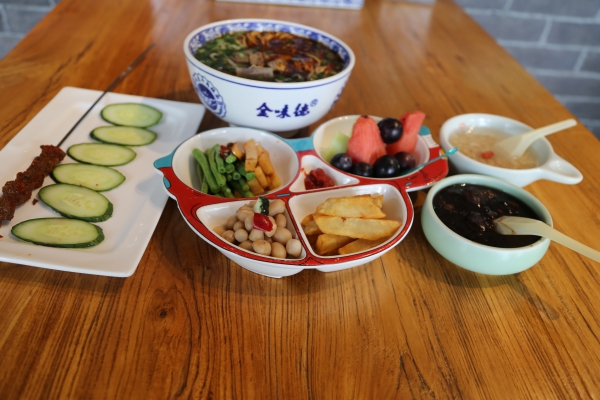 我們店里面的特色就是別家沒有的,比如說我們的翡翠營養拉面(綠色的,用蔬菜做的)、至尊牛肉拉面、牛腩拉面、南瓜牛肉面、蔬菜涼面、酸菜牛肉米線、南瓜營養涼面、雜醬面、炒面、羊肉泡饃等多種特色,還有我們的涼菜都是專門的師傅做的,不像其他店的服務員做涼菜,這也是我們店的一大特色,當然服務肯定是沒得說了。