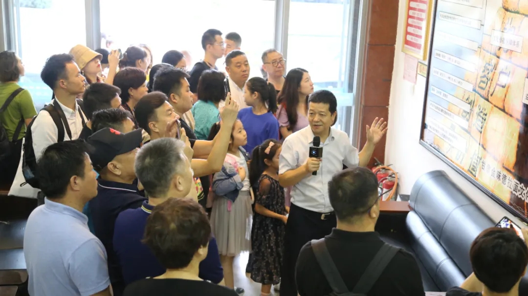 參訪團一行參觀考察甘肅興隴蘭州牛肉拉面職業培訓學校、興隴蘭州牛肉拉面國際商學院;集團董事長梁順儉介紹公司發展情況及講解金味德蘭州牛肉拉面產業集團組織架構。
