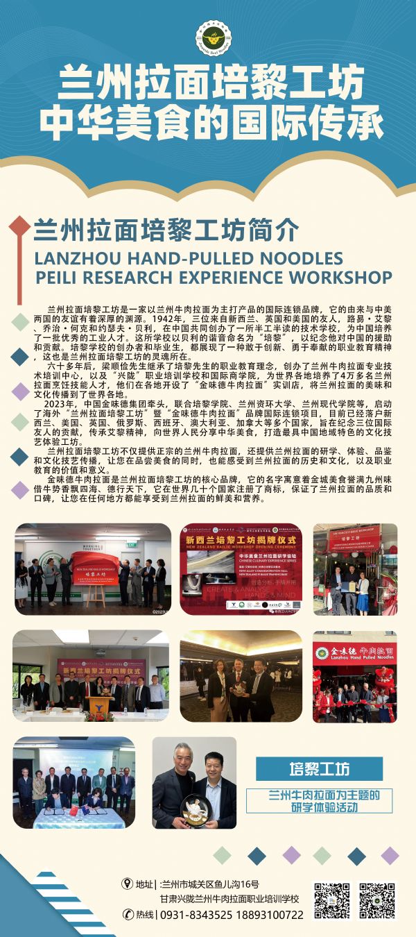 2023年5月8日,蘭州資源環境職業技術大學聯合培黎職業學院、金味德拉面文化產業集團和新西蘭UUNZ學院在新西蘭成立了首家以弘揚中國特色飲食文化的蘭州牛肉拉面研學體驗工坊——培黎工坊。這一創舉不僅搭建起了中新文化交流的橋梁,更開啟了中新職業教育國際合作交流的新篇章。
