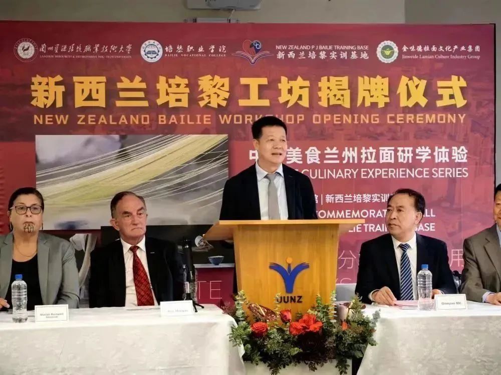 2023年,利用金味德國內外市場資源,在新西蘭、英國、美國、加拿大開始啟動了海外中華飲食文化技術研學體驗工坊,面向海外的大、中、小學和普通大眾研學體驗蘭州拉面文化藝術、與海外職業院校合作、開展短期蘭州拉面烹飪職業技能培訓,服務海外蘭州拉面企業更好、更快發展,海外“中華飲食文化技術研學體驗工坊”,簡稱“蘭州拉面培黎工坊”,以文旅研學體驗、產教融合的方式,開啟“蘭州拉面師”職業帶動產業國際化發展新模式,也更快速的讓國內外了解牛肉面文化。