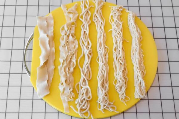 “五黃”則是由高筋面粉制作而成勁道順滑的面條,共有毛細、細面、二細、三細、韭葉和寬面六種選擇,都是由專業的拉面師傅純手工抻拉而成。